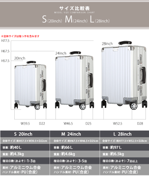 対象 スーツケース キャリーケース ビジネスバッグ 旅行バッグ 旅行鞄 展示会 家族旅行 出張 レディース アタッシュケース 学生 修学旅行 社会人 卒業旅行 営業回り 女性 男性 単身 衣装ケース 着物収納 海外旅行 国内旅行 国内出張 海外出張 引っ越し 用途 【ビジネス】---通勤用 営業回り 出張 展示会 海外出張 国内出張 機内持ち込みサイズ有 【カジュアル】---旅行 家族旅行 単身旅行 女子旅行 引越し用ケース 世界旅行 世界一周 バックパック 一人旅 自分見つける旅 【イベント】---母の日 誕生日 お見合い クリスマス バレンタイン ホワイトデー こどもの日 卒業 説明会 セミナー 修学旅行 卒業旅行 林間学習 お泊り 訪問 営業 【ギフト】---誕生日 バースデー 入社祝い 就活 入学祝い 内定祝い 就職祝い クリスマス プレゼント お返し 退職祝い 母の日 結婚祝い 内祝い 出産祝い 復帰祝い 父の日 記念日 関連用語 ビジネス バッグ トートバッグ 肩掛け 合成皮革 PVC PU ユニセックス レディース メンズ 出張 就職 面接 プレゼント 子供の就職祝い クラッチ 携帯ケース iphone ipad タブレットケース 書類 折らずに収納 ゆったり 大き目 学生 無地 男女兼用 送別会 退職祝い ギフト ポイント消費 楽天ポイント アウトレット 喜ばれるギフト 成功の秘訣 激安 セール-----------アルミニウムボディ-----------スーツケースの素材としては抜群の強度を誇る高級素材アルミニウムを使用。