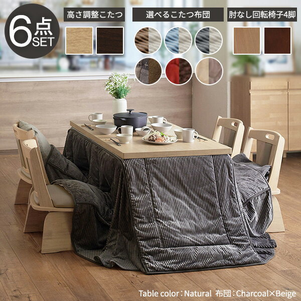 ダイニングテーブルセット ダイニングセット おしゃれ 安い 北欧 食卓 4人用 四人用 3人 135×80 こたつ 昇降式 高さ調整 ロータイプ 低め こたつ布団 回転椅子 4脚 天然木 ブラウン モダン