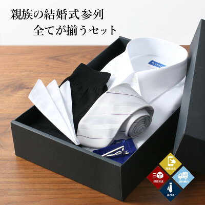 結婚式 ワイシャツ [結婚式に呼ばれたら? フォーマルコーデセット] 形態安定 ワイシャツ セット 小物 フォーマル ネクタイ タイピン チーフ メンズ 男性 パーティー シャツ 父 旦那 紳士 ギフト 親族 ブライダル ウェディング 綿100% コスパ[あす楽 送料無料]