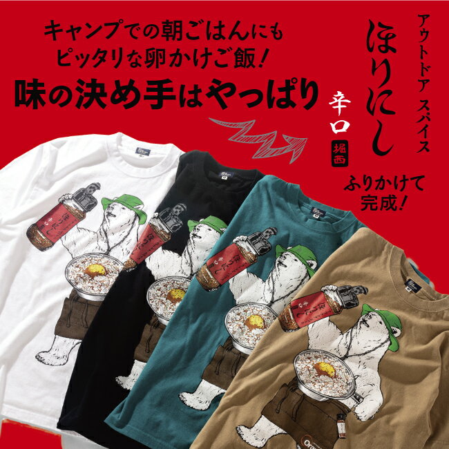 カラー 000 WHITE012 BLACK046 APPLE GREEN081 BEIGE 詳細 アウトドアスパイス「ほりにし」とゴースローキャラバンの人気コラボの第2弾が登場! キャンプでの朝ごはんにもピッタリな卵かけご飯 味の決め手に「ほりにし辛口」を振りかけて完成! 今回は4色展開と更にカラーバリエーションも増えました。