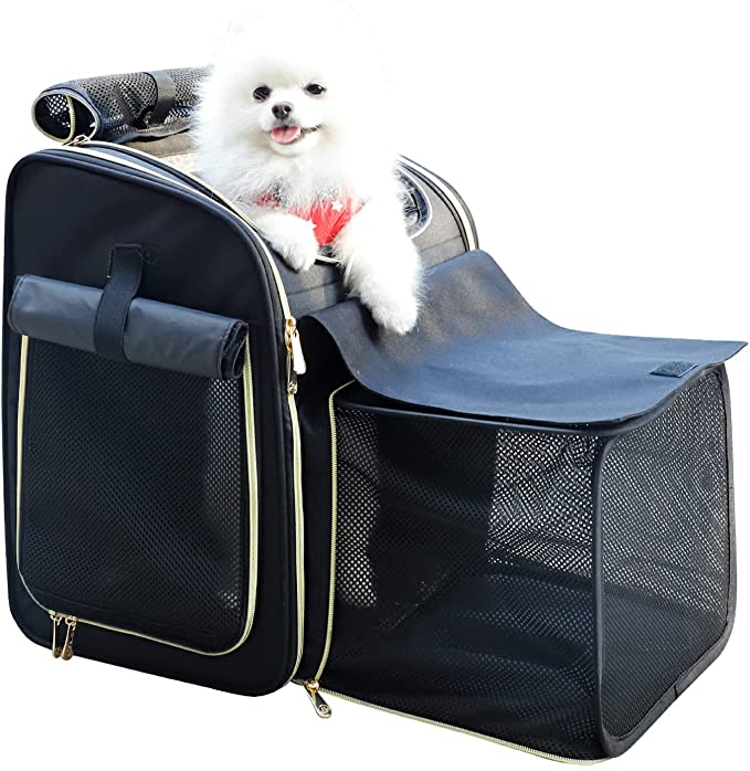 拡張可能 ペットキャリーバッグ 大容量 避難用 リュックバッグ 犬キャリーバッグ 猫キャリーバッグ 3way仕様通気性 犬リュック 猫リュック 安定性 10kg耐荷 旅行/通院/散歩/電車移動/お出かけ便利/ドライブ 犬/猫/ウサギ/小動物適用 ブラック