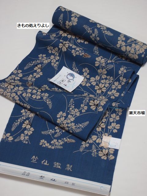 竺仙鑑製浴衣地 奥州小紋 萩の柄 藍色に薄茶【ちくせん】【ゆかた】【夏祭り】【送料無料】