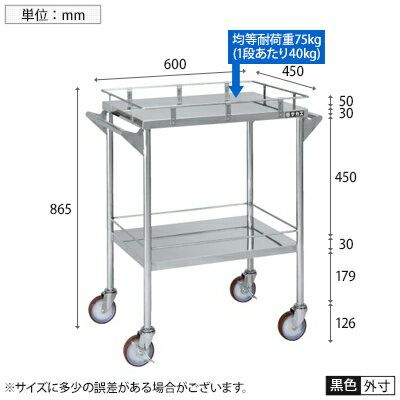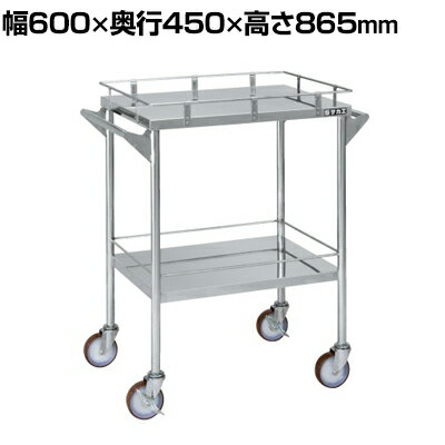 サカエ ステンレスCSワゴン こぼれ止め 両側取手付き SUS304 棚板2段 耐荷重40kg/段 幅600×奥行450×高さ865mm CSF-D4SU