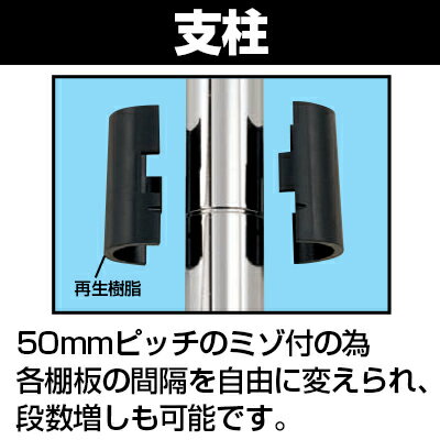 サカエ ステンレスニューパールワゴン 固定タイプ SUS304 棚板3段 耐荷重100kg 幅600×奥行400×高さ780mm PBN-03SUA ●導電性ブッシュ採用で棚板と支柱との密着強化を図っています。